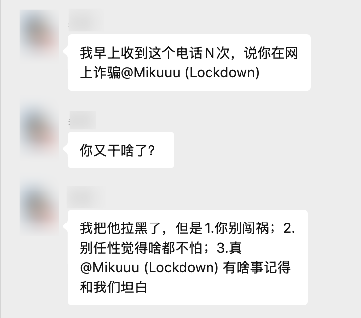 即此次事件后,Gaimoy在期间在Telegram平台发布本人的黑历史。(由于近期本人没有上外网,我也不知道发了啥)。本以为事情告一段落,结果在今天大约11:20分,他找到了我家长的电话并声称我“骗钱”。